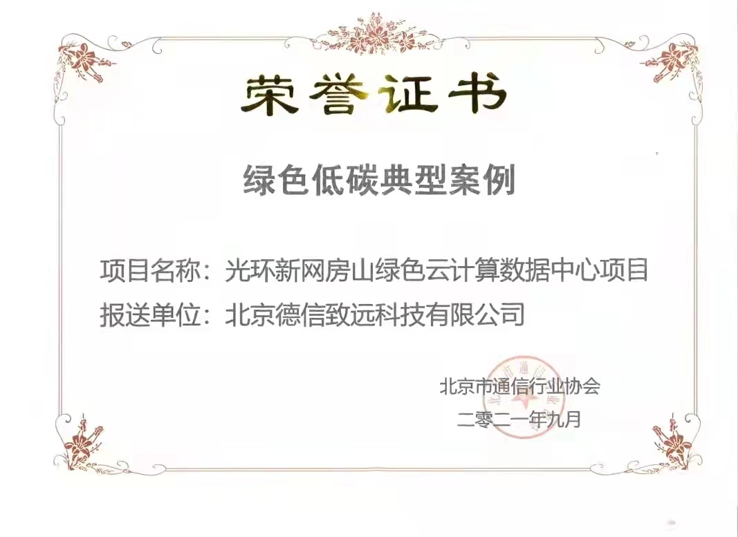 光环新网全资子公司北京德信致远科技有限公司旗下"光环新网房山绿色云计算数据中心项目"因技术领先、节能减排效果明显、具有引领性和示范性,能够反映绿色节能领域的最新进展,具有良好的推广价值和社会效益获评“绿色低碳典型案例”,成为仅有的三家获此殊荣的参选项目之一。